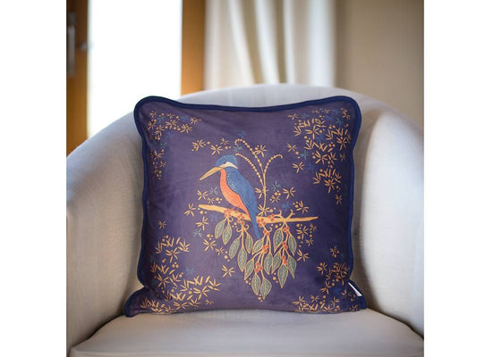Designer Velvet Cushion Cover – Artistic Kingfisher Design | Nature-Inspired Statement Cushion (45x45cm)
