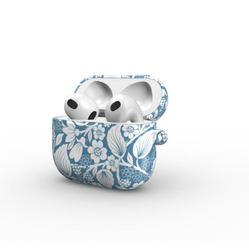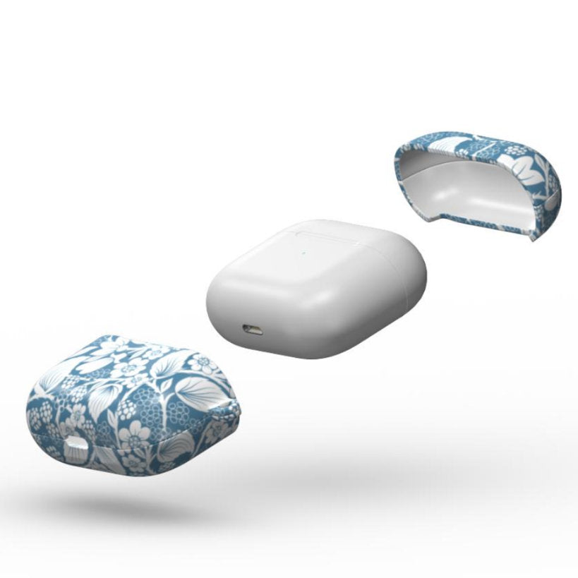 This design pairs a dusky blue background with intricate white blackberry foliage and blossoms. The detailed pattern has an elegant, timeless feel — perfect for those who appreciate quiet sophistication in their everyday accessories. Slim and glossy, this AirPods case keeps your tech protected while looking refined.