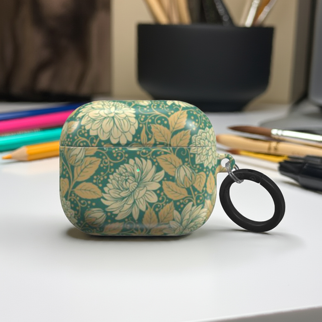 Vintage Floral AirPods Case – Cream Dahlias on Rich Teal